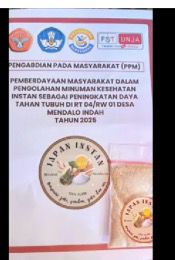 Kegiatan pengabdian yang dilaksanakan di RT.04 RW.01 Desa Mendalo Indah, Kecamatan Jambi Luar Kota Kabupaten Muaro Jambi itu berupa kegiatan sosialisasi, pelatihan pengolahan minuman instan jahe, pelatihan pengemasan dan labelisasi produk, pendampingan manajemen usaha dan pemasaran serta evaluasi.