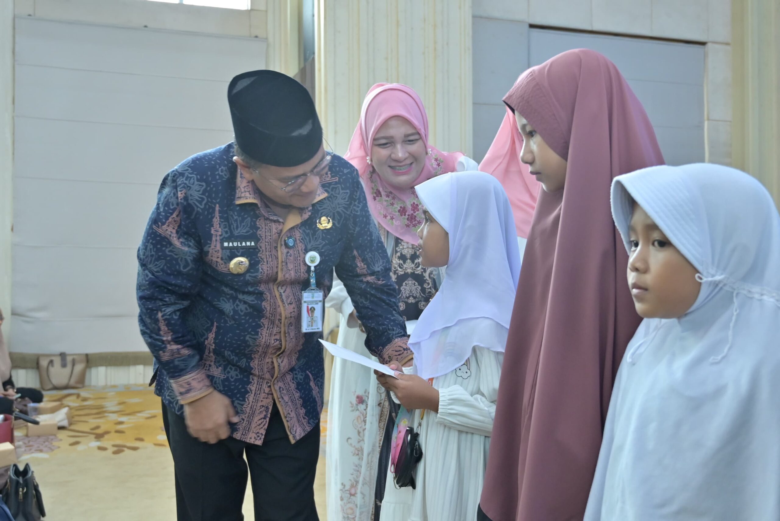 Dalam suasana penuh makna itu, Wali Kota Maulana menyerahkan santunan kepada 105 anak yatim, yang secara simbolis diberikan kepada lima perwakilan.
