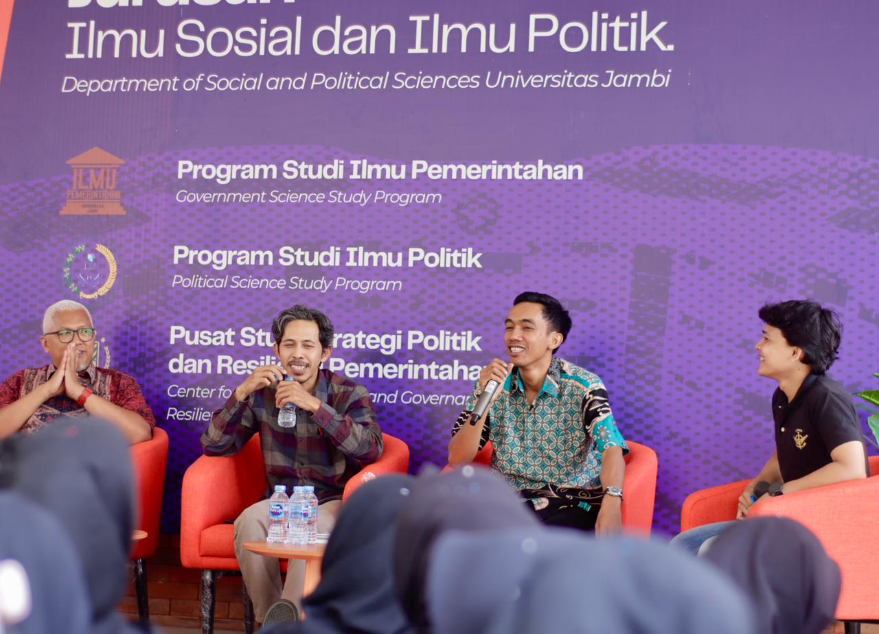 Acara dibuka secara resmi oleh Ketua Jurusan JISIP FH UNJA, Rio Yusri Maulana, S.IP., M.I.Pol., Ph.D. Turut hadir Koordinator Program Studi Ilmu Pemerintahan, Michael Lega, S.I.P., M.I.P., serta para dosen dan mahasiswa.