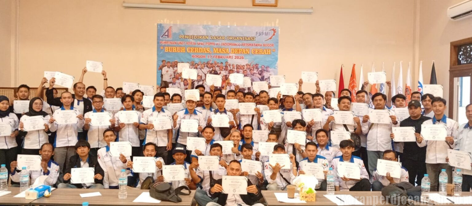 WartaPendidikan.co.id, Bogor, 18 Februari 2026-Dalam rangka mencetak kader yang berkualitas dan loyal, Pimpinan unit kerja (PUK) SPAI FSPMI PT. Indomarco Prismatama Kabupaten Bogor menyelenggarakan Pendidikan Dasar Organisasi (PDO). Acara tersebut berlangsung khidmat di Villa Naura, Caringin, Ciawi, pada Selasa, 17 Februari 2026.