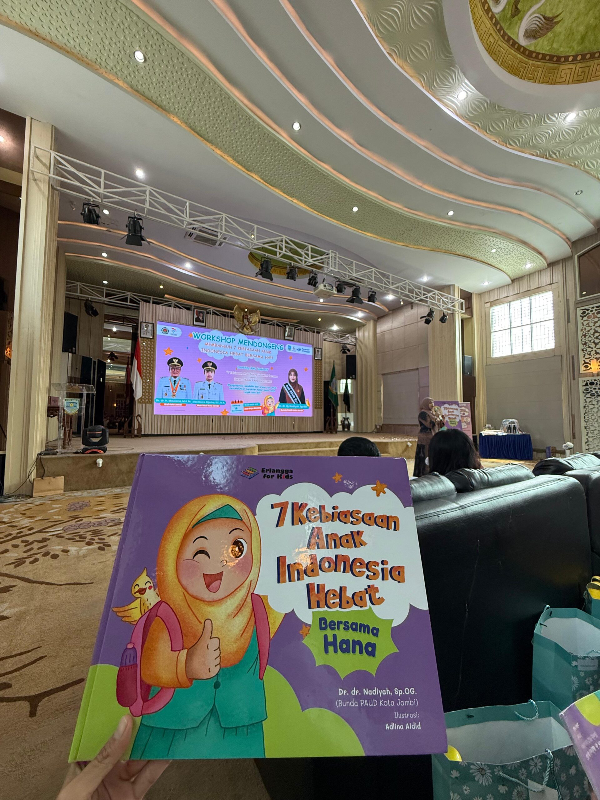 WartaPendidikan.co.id, Jambi – Ketua Tim Penggerak Pemberdayaan Kesejahteraan Keluarga (TP PKK) Kota Jambi, dr. Nadiyah, Sp.OG, menegaskan komitmennya dalam memperkuat fondasi karakter dan literasi anak usia dini. Komitmen tersebut diwujudkan melalui pembukaan Workshop Mendongeng sekaligus peluncuran buku terbarunya yang berjudul “7 Kebiasaan Anak Indonesia Hebat Bersama Hana” di Jambi.
