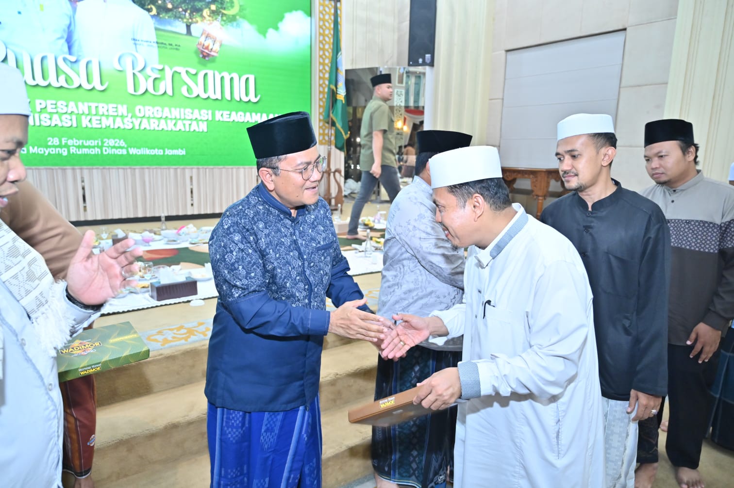 Hal itu tampak dalam kegiatan buka bersama yang dilaksanakan pada Sabtu (28/02/2026), bertempat di Aula Griya Mayang, Rumah Dinas Wali Kota Jambi. Dirinya mengundang sejumlah Pimpinan Pondok Pesantren, Organisasi Keagamaan, dan Organisasi Kemasyarakatan.